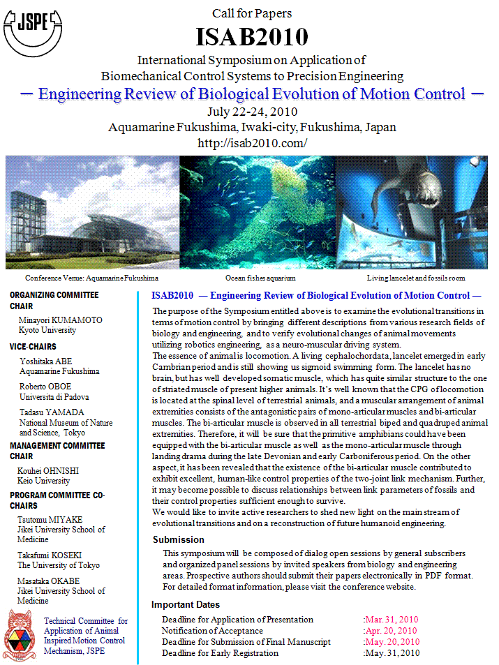 -Engineering Review of Biological Evolution of Motion Control- July 22-24, 2010, Aquamarine Fukushima, Iwaki-city, Fukushima, Japan |